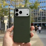 Цього року стандартний кейс Apple Techwoven (колишній FineWoven) виявився несподівано вдалим. Він приємний на дотик, має дуже чіпкі боковини й за місяць активного використання не забруднився. Проте він має один суттєвий недолік — занадто вузький виріз під Type-C. Якщо ви плануєте знімати відео безпосередньо на зовнішній SSD (як це радить сама Apple), багато кабелів просто не влізуть у цей отвір. Популярні кейси від Pitaka також мають свої мінуси: через особливості конструкції вони часто призводять до випадкових натискань на кнопку Camera Control.